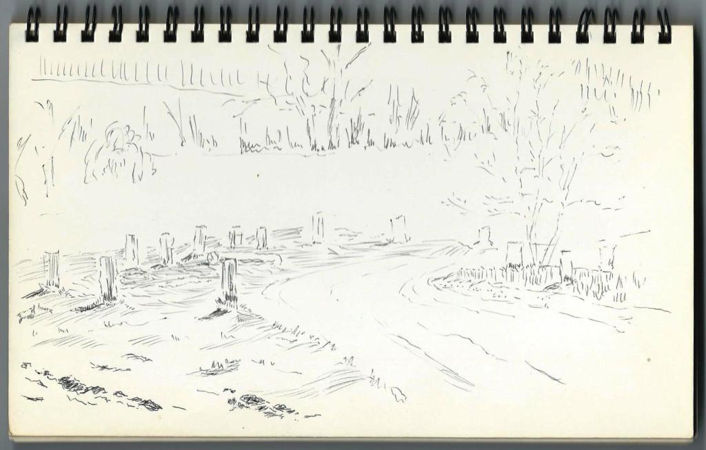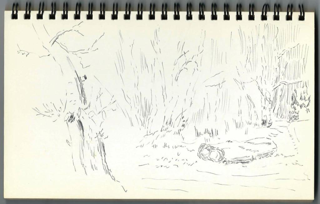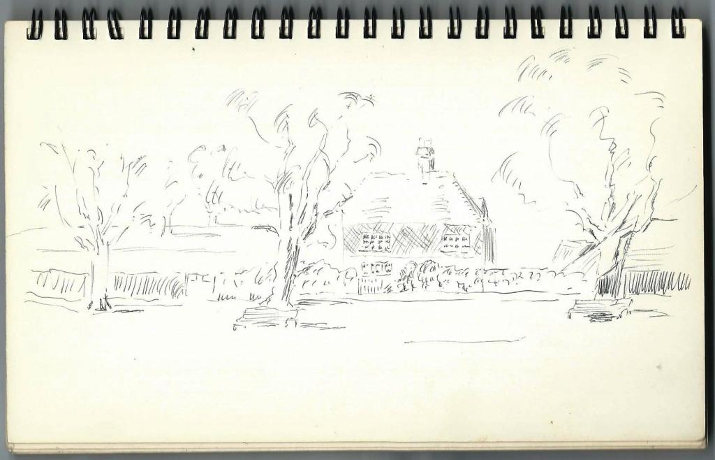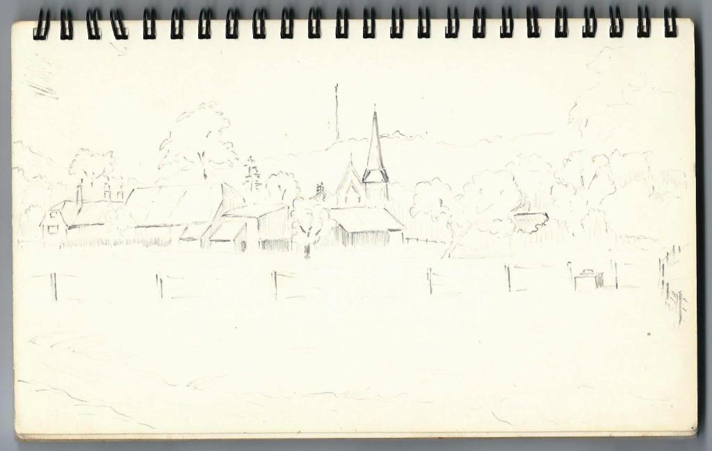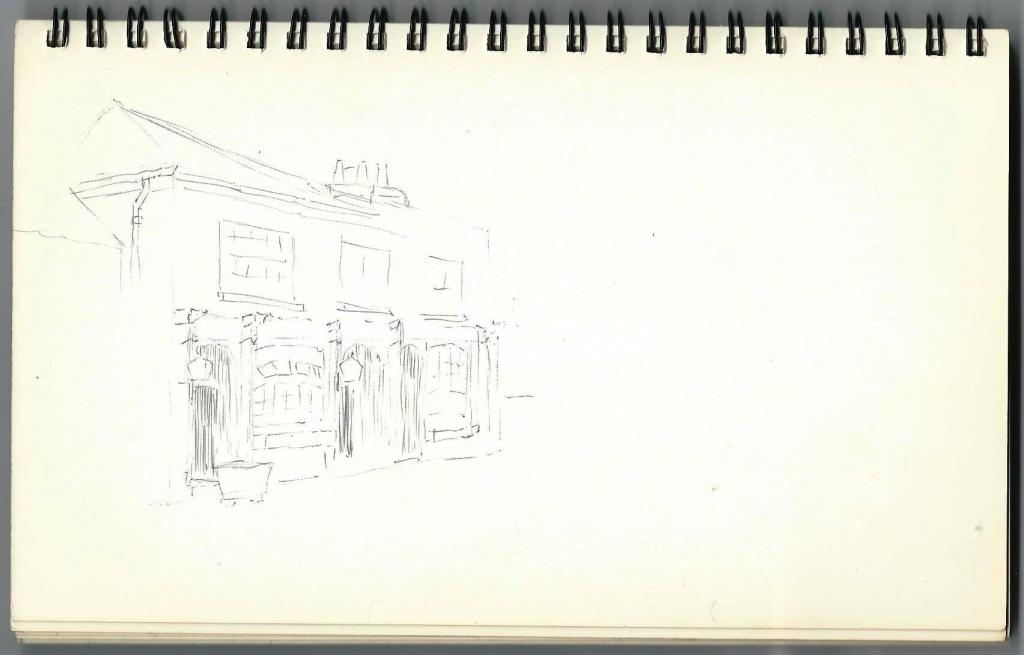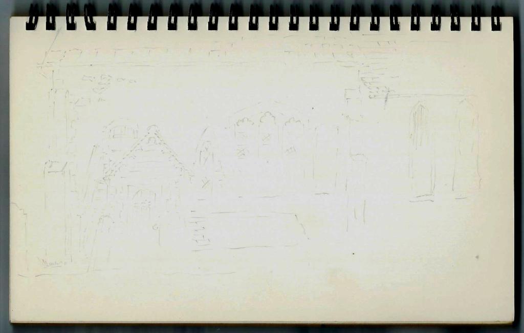 The book contains what appear to be preliminary sketches for a water colour painting of a sailing ship but I have no knowledge of any such finished work.